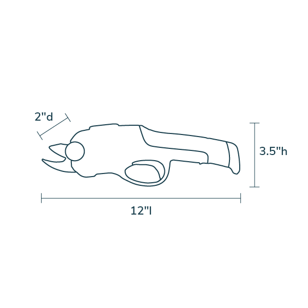 Pruner lets you work effortlessly – The Toucan Tools™ Rechargeable Power Pruner eliminates the strain associated with squeezing conventional manual pruners while landscaping and gardening. Perfect for green wood, woody stems, twigs and branches up to 0.39" dia., it provides a clean, precise cut. Cutting is as simple as squeezing a trigger, and the 3.6v battery provides up to 600 cuts on a single charge. Pruner takes a bothersome task and makes it effortless—it’s actually fun to use! Ergonomic handle provides a secure, comfortable grip, and a built-in safety switch prevents accidental cuts. Ideal for those who suffer from arthritis or whose hands are not as strong as they used to be. Includes charger. Measures about 12"l x 2"w x 3 1/2"h and weighs less than 1 1/2 lb.