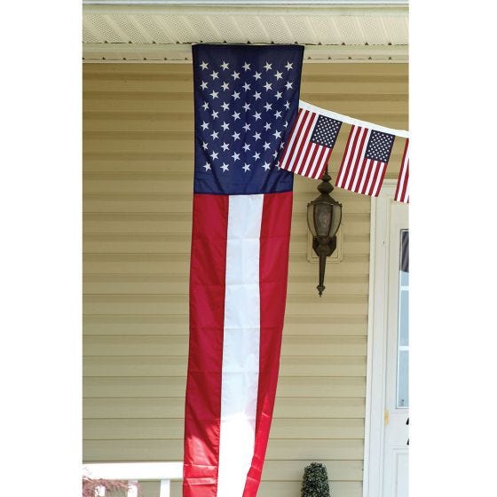 Give your patriotic gatherings a vintage feel with the classic look with our 50 Stars Bunting Pulldown. The brilliant colors add that final touch to your bunting decorations. Each bunting pulldown has printed stars, sewn stripes, and a canvas heading with grommets. Easy to hang where you want. Measures 8 feet by 20 inches. Made in the USA, of weather-resistant nylon.