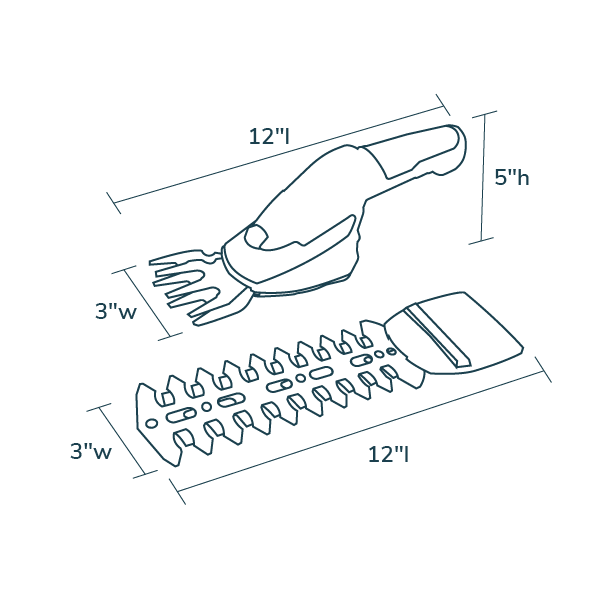 - Includes two stainless steel blades, a 4" grass shear and 7" hedge clipper