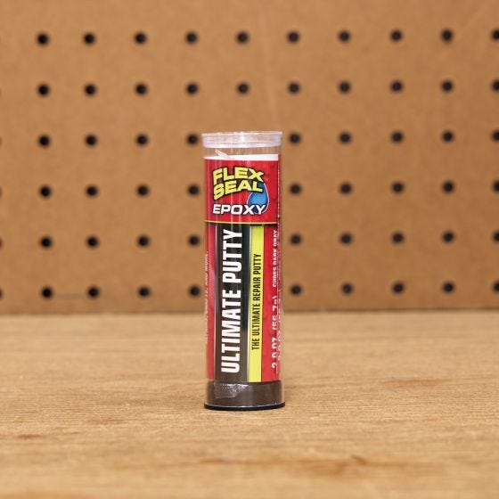 This Flex Seal Ultimate Epoxy Putty delivers extraordinary versatility with its advanced formula. Once cured, it’s waterproof, heat-resistant, and tough enough to handle heavy-duty repairs indoors or out. It bonds to metal, wood, concrete, glass, ceramic, brick and more. Can be shaped, tapped, drilled, and painted. Each kit includes a 2 OZ. tube that cures dark gray. UL Verified.