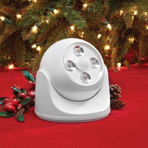 Because it’s weatherproof and battery-operated, you can place the Large Motion Activated Outdoor Light anywhere—no wires, electrical cords or outlets needed! Four amazingly bright LEDs automatically turn on when movement is detected within 25 feet. The included mounting base measures 6 inches in diameter and lets you mount it on a wall, but you can even place it on the ground. Swivels and rotates so you can easily aim it. Operates on four D Cell batteries (sold separately) which will last up to a year under typical usage, and a light sensor activates the unit at dusk, conserving power. Ideal for lighting paths, steps, porches, sheds, patios, etc. but can also be used indoors to light your basement, garage, attic, closet, stairs or hallway. Features easy auto-pairing technology which allows multiple Lights to communicate, meaning when one light detects motion all other paired units light up. Lights up to 150 feet!Ordering Instructions: