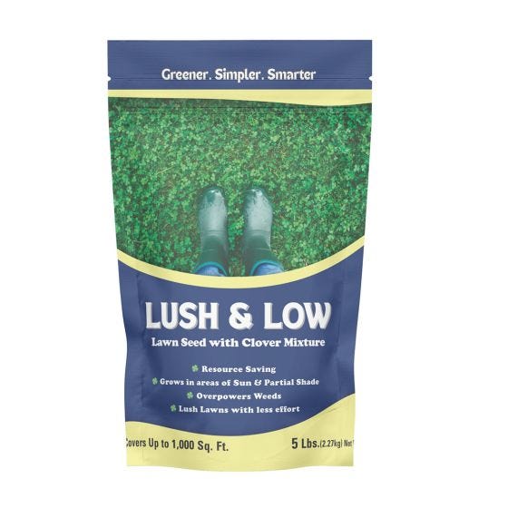 This Miniclover lawn seed mix is designed to deliver a thick, green lawn with minimal maintenance. Miniclover naturally improves soil health, helps retain moisture, and reduces the need for fertilizers and constant watering. As it fills in, it crowds out weeds, cutting down on the need for harsh chemicals. The result is a healthier, more resilient lawn that stays attractive with less work and less impact on the environment. 5 lb. bag covers about 1,000 sq. ft. Made in the USA.