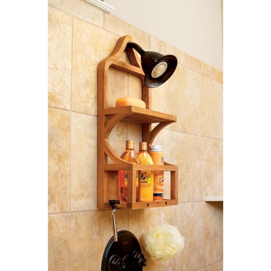 Bring refined craftsmanship and enduring elegance into your bathroom with our solid Teak Shower Organizer—crafted for those who appreciate lasting quality and thoughtful design. Teak has long been celebrated for its strength and resistance to moisture. In the bath, its rich grain, smooth finish, and natural resilience make it the perfect material for keeping your shower space both beautiful and functional. This two-shelf organizer offers ample room for shampoo, conditioner, and shaving cream, while integrated hooks hold razors and brushes, and a removable slatted tray keeps bar soap neatly in place.